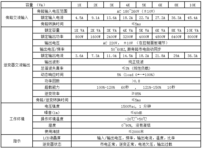 純正弦波輸出,適合所有阻性和感性負(fù)載;