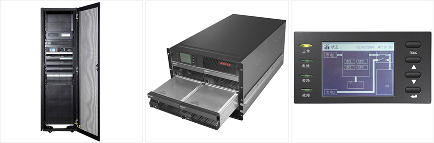 1、ARRAY MP UPS可以為用戶提供將UPS單元、電池單元、配電單元、防雷單元和監(jiān)控單元等模塊集成在一個機柜里的電力解決方案。