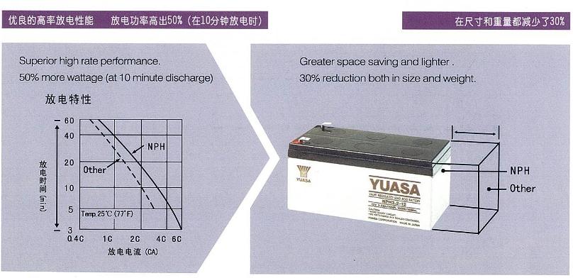 NPH系列是專為滿足高率放電需求而設(shè)計(jì)的。與普通的NP型號(hào)電池相比,NPH系列的大電流放電功率高出50%。